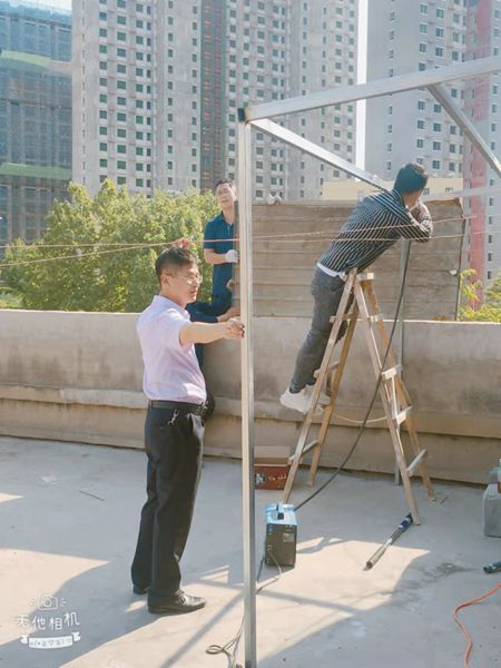 說干就干,立即行動(dòng)。劉保國(guó)和左建華對(duì)樓頂平臺(tái)實(shí)地量測(cè),記錄好尺寸。兩人一邊量著,一邊比劃著,對(duì)所需的材料做到心中有數(shù)。“采購(gòu)材料的事兒,就交給我了?!痹O(shè)備材料科科長(zhǎng)史永濤拿出電話就開始聯(lián)系起來。材料就位后,考慮到有些電焊的活兒需要專業(yè)的工人,劉保國(guó)趕緊聯(lián)系了一名電焊工。大家分工合作,你遞材料、我扶鋼管,你安裝、我綁線,邊干邊聊。30多度的高溫下,大家的額頭上直冒汗,但干勁兒絲毫沒減。防雨棚安裝完畢,新買的洗衣機(jī)放置到位,大家松了一口氣?!敖裉斓拇蠊こ探Y(jié)束了,趁著這次機(jī)會(huì),咱們把宿舍的門窗都檢查一遍?!眲⒈?guó)說道,抬手擦了擦汗水,便拿起工具向宿舍走去。大家對(duì)宿舍的門窗逐一進(jìn)行檢查,對(duì)破洞的紗窗進(jìn)行了更換,對(duì)門上松動(dòng)的把手進(jìn)行了維修。