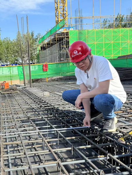 在搶抓進(jìn)度的同時(shí),史驚濤深知質(zhì)量是項(xiàng)目的生命線。他帶領(lǐng)團(tuán)隊(duì)狠抓質(zhì)量控制,實(shí)現(xiàn)過程精品、一次成優(yōu),定期召開“質(zhì)量分析會(huì)+作業(yè)面交底會(huì)”,嚴(yán)控每一個(gè)環(huán)節(jié)、精研每一道工序,尤其是在地下室施工鋼筋綁扎階段,鋼筋間距密、數(shù)量多,柱插筋、集水坑鋼筋要求位置精確,施工難度較大,他認(rèn)真分析質(zhì)量控制重點(diǎn)和難點(diǎn),進(jìn)行專項(xiàng)攻關(guān),結(jié)合現(xiàn)場(chǎng)實(shí)際情況反復(fù)推敲施工方案,按照?qǐng)D紙?jiān)O(shè)計(jì)間距,在基礎(chǔ)墊層上彈好鋼筋位置線,綁扎時(shí)嚴(yán)格按照位置線進(jìn)行柱插筋及集水坑鋼筋的放置及綁扎,墻筋采用水平和豎向定位筋,確保綁扎牢固,間距均勻,縱橫成線。
