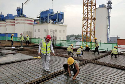 同心協(xié)力完成節(jié)點任務。水泥配料站、水泥粉磨是業(yè)主目前關(guān)注重點,要求8月3日前筒倉滑模到14.4米庫底板、水泥粉磨11.5米平面混凝土澆筑完,為安裝輥壓機、減速機等設(shè)備創(chuàng)造條件。時間緊任務急,持續(xù)的降雨反而更加激發(fā)了項目部的斗志,水泥配料站筒倉施工采用滑模工藝,滑模平臺上鋼筋綁扎、預留預埋安裝、混凝土澆筑、庫壁壓面等各道工序相互配合,工種銜接默契。雖然雨水經(jīng)常光顧,但是大家沒有絲毫懈怠,熱火朝天的干勁兒始終未減。水泥粉磨車間樓層高、場地狹窄給施工造成困難,項目部采用白天作業(yè)面施工,晚上班組倒運材料等方法,保證施工進度。截至7月30日上午,水泥配料站14米庫底板、水泥磨11.5米平面、水泥及礦粉儲存基礎(chǔ)筏板均已澆筑完混凝土,為項目下一步施工創(chuàng)造了積極有利條件。(三分公司)