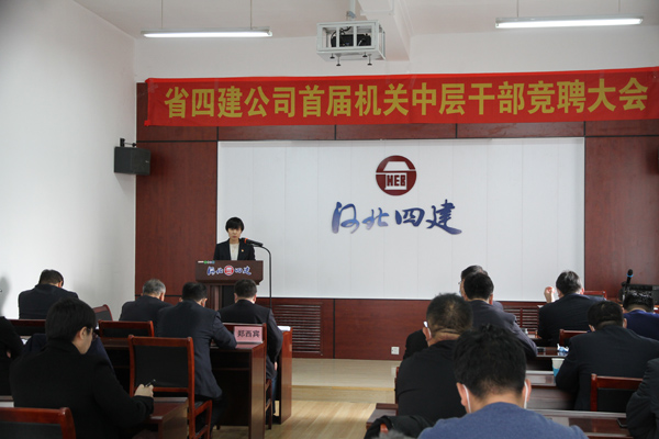 公開競聘選賢才,四建才俊展風(fēng)采。2021年2月24日,省四建公司首屆機關(guān)中層正職崗位競聘會在四樓培訓(xùn)中心舉行。30人(次)英才跨上講臺,暢談自己對11個中層正職崗位的履職目標(biāo)和創(chuàng)新舉措,為公司各部門的管理獻計獻策。這是公司成立以來首次機制改革大規(guī)模人才選拔考評活動。公司黨委書記董事長董富強發(fā)表開賽致辭和總結(jié)講話。公司黨委副書記、紀(jì)委書記、工會主席李懷生主持競聘大會。
