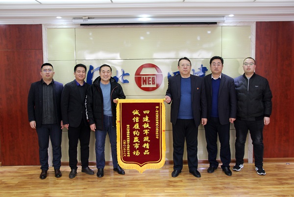 2022年1月7日上午,滄州滄海明珠旅游開(kāi)發(fā)有限公司副總經(jīng)理姬新強(qiáng)、項(xiàng)目推進(jìn)辦主任楊龍生一行人專程從滄州來(lái)到公司,感謝公司保節(jié)點(diǎn)、高質(zhì)量地完成施工任務(wù),并鄭重地將寫(xiě)有“四建鐵軍筑精品 誠(chéng)信履約贏市場(chǎng)”的錦旗送到公司黨委副書(shū)記、總經(jīng)理唐志強(qiáng)手中。公司副總經(jīng)理張新煜、三分公司經(jīng)理李書(shū)偉一同接待了姬新強(qiáng)一行。