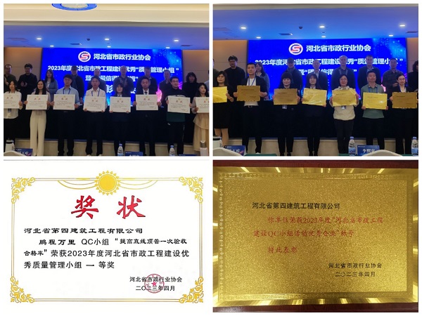 4月18日-20日,2023年度河北省市政工程建設質量管理小組成果交流會在正定召開,第七分公司鵬程萬里QC小組發(fā)布的《提高直線頂管一次驗收合格率》成果獲得一等獎,公司榮獲2023年度“河北省市政工程建設QC小組活動優(yōu)秀企業(yè)”榮譽。