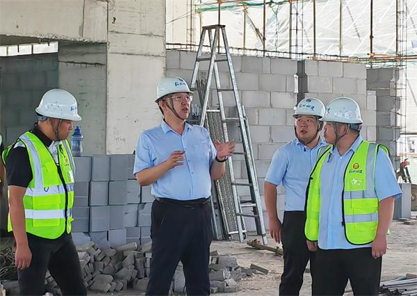 隨后,唐志強(qiáng)深入施工現(xiàn)場(chǎng)實(shí)地檢查??吹紹館和C館鋼結(jié)構(gòu)正在施工,他叮囑項(xiàng)目部切實(shí)做好暑期安全保障工作。在正進(jìn)行二次結(jié)構(gòu)施工的A館,他仔細(xì)查看了主體結(jié)構(gòu)梁板柱和二次結(jié)構(gòu)砌筑情況,對(duì)施工質(zhì)量表示滿意;詳細(xì)詢問(wèn)了施工人員數(shù)量,提醒項(xiàng)目部加強(qiáng)現(xiàn)場(chǎng)施工組織,確保進(jìn)度;針對(duì)模板異形較多、周轉(zhuǎn)次數(shù)少、占用量大的問(wèn)題,建議項(xiàng)目部多個(gè)單位工程統(tǒng)籌策劃,合理推進(jìn),科學(xué)組織施工,保證進(jìn)度的同時(shí)降低成本。