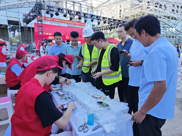活動開始前,吳嘉龍一行聽取了項目部工作匯報,參觀了施工現(xiàn)場,并對省直工會普惠政策和“職工e惠”綜合服務(wù)平臺進(jìn)行了詳細(xì)介紹。隨著下班時間的到來,項目部職工陸續(xù)來到彩旗飄揚的活動現(xiàn)場,由不同領(lǐng)域勞模組成的六支服務(wù)隊前漸漸圍滿了人群,有的修剪頭發(fā),有的為手機(jī)貼膜,有的接受專家的診療、領(lǐng)取免費的藥物,有的聽取法律條文及最新的技術(shù)信息等方面的介紹……下午6點30分,在一曲優(yōu)美的開場舞蹈《我的祖國》中,“送文化志愿服務(wù)”拉開了序幕。舞臺上,歌曲、反串、變臉、相聲、雜技、舞蹈,一個個精彩節(jié)目輪番上陣,為職工們送上了一場視聽盛宴。在互動環(huán)節(jié),現(xiàn)場職工熱情高漲、積極參與,掌聲、喝彩聲此起彼伏,歡聲笑語久久回蕩。昂揚向上的文藝節(jié)目,展現(xiàn)了勞動者的精氣神,給予了職工極大的鼓舞。