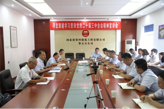 董富強強調(diào),要全力以赴抓好全會精神的學習貫徹工作,一要篤信提站位,充分認識全會的重大意義,把思想和行動統(tǒng)一到黨中央決策部署上來,要堅持和落實“兩個毫不動搖”,以實際行動捍衛(wèi)“兩個確立”,堅決做到“兩個維護”。二要篤學悟精神,采取多種形式抓好全會精神的學習,加強統(tǒng)籌協(xié)調(diào)和督促指導,做到學深悟透、融會貫通。三要篤行齊奮進,以全會精神為指引,增強機遇意識,堅定信心,全力做好市場開發(fā)、風險防控、項目管理等工作,推進公司發(fā)展邁出新步伐,為奮力譜寫中國式現(xiàn)代化建設(shè)河北篇章作出河北四建新貢獻。