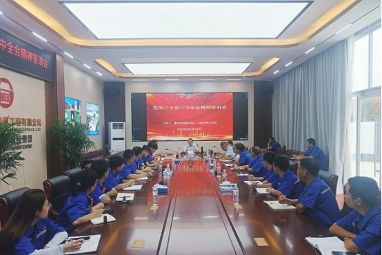 8月19日下午3點,四分公司石家莊市西南地表水廠項目全體職工在會議室齊聚一堂,聆聽集團黨委副書記、董事、工會主席王文利所作的黨的二十屆三中全會精神的宣講。集團黨委辦公室主任張占飛,公司黨委副書記、紀委書記、工會主席李懷生,分公司黨總支書記王建民一同參加。分公司其他班子成員、機關中層及職工通過線上一同學習。