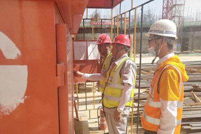 近日,大風大雨頻頻光顧現(xiàn)場給塔吊運行帶來安全隱患,項目部迅速組織專項檢查,對塔吊螺栓、塔身垂直度、基礎(chǔ)是否積水進行認真檢查與測量,發(fā)現(xiàn)問題馬上采取措施。頻繁的降雨對現(xiàn)場臨電安全是個巨大考驗,項目部加大對現(xiàn)場臨時用電設(shè)備的檢查力度,用電設(shè)備接零、接地嚴格按照規(guī)范要求進行操作,電纜線路一律采用PVC管保護,避免泡水或磨損造成漏電事故。生產(chǎn)經(jīng)理、安全員、水電工長每天對現(xiàn)場電源線路、漏電保護器靈敏度、配電箱進行仔細檢查,確保臨電線路和用電設(shè)備安全。