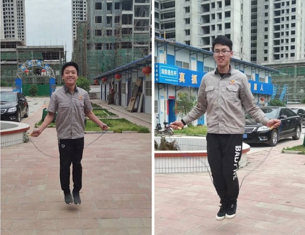 各項(xiàng)目部根據(jù)場(chǎng)地條件自行制定比賽內(nèi)容,讓職工們自由選擇,有羽毛球、跳繩、踢毽子等。所有活動(dòng)中比較熱鬧的有許昌項(xiàng)目部的跳繩比賽,青年職工回軍帥、唐文耀、李詩(shī)奇、劉彥、肖博文等兩人搖、多人魚貫順序跳的長(zhǎng)繩賽,李政良,高巖單人雙手搖、自搖自跳的短繩賽,他們配合協(xié)條性好,單次跳的數(shù)量最多,迎來(lái)場(chǎng)外職工陣陣喝彩。