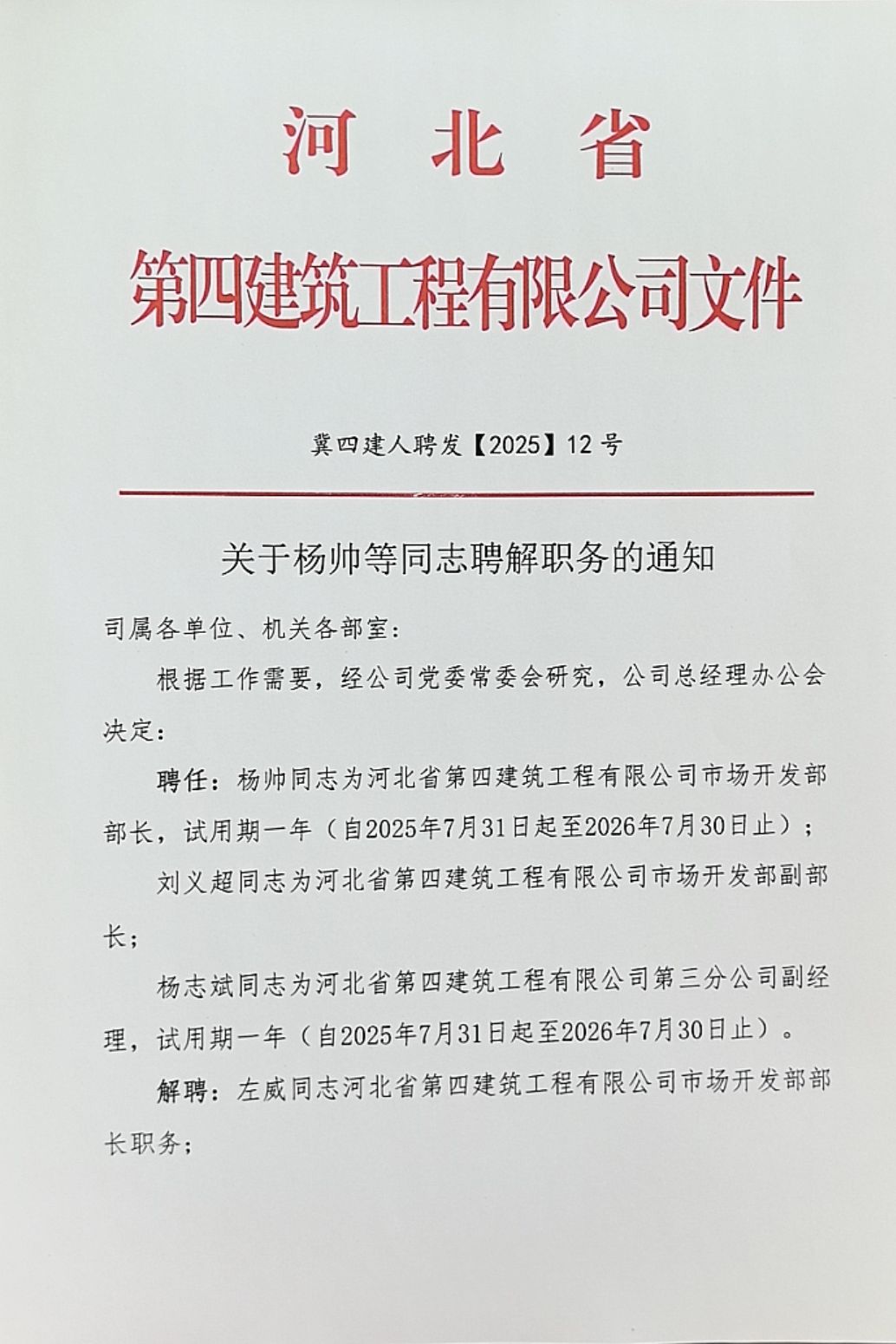 關(guān)于楊帥等同志聘解職務(wù)的通知