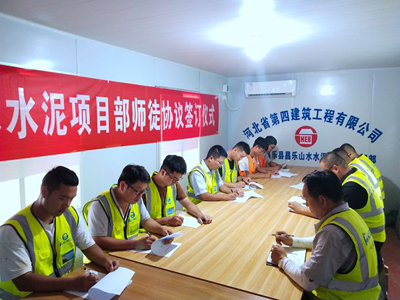 8月5日上午,三分公司山東濰坊昌樂山水水泥項目部會議室掌聲不斷,剛分到項目部的五名新職工和師傅簽訂幫帶協(xié)議場面熱情洋溢。項目經(jīng)理楊志斌主持儀式,班子成員及部分管理人員參加。