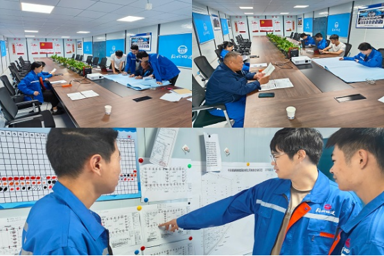 夜晚,成員們針對設(shè)計(jì)圖紙與現(xiàn)場施工軸線不一致的情況,通過互聯(lián)網(wǎng)進(jìn)行學(xué)習(xí),使用 GPS 為平房倉軸線定位。在工地上,成員們按照圖紙內(nèi)容嚴(yán)格執(zhí)行地梁箍筋間距、樁頂標(biāo)高等的規(guī)范要求,遇到不明白的地方就向工地上的老師傅請教,共同探討。他們將所學(xué)內(nèi)容與實(shí)際工作緊密結(jié)合,形成學(xué)和用的良性閉環(huán)。每周三晚上的問題交流會,以“互動式、聊天式”的學(xué)習(xí)方法,調(diào)動成員學(xué)習(xí)興趣和熱情。大家集思廣益,解決實(shí)際問題,激發(fā)創(chuàng)新思維和工作熱情。